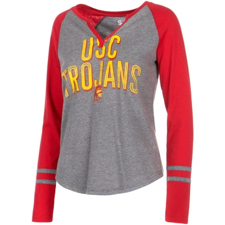 Women S Gray Usc Trojans Diane Notch Neck Striped Sleeve Long