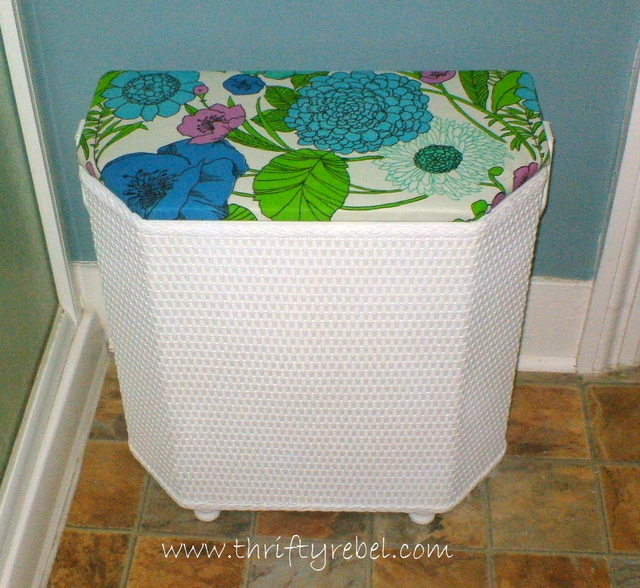 Vintage Clothes Hamper Harvey Wicker White Quilted Vinyl Hinged