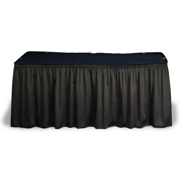 Black Shirred Table Skirt With Topper Covers 8 Foot Long