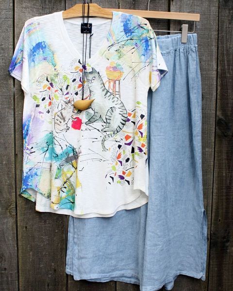 Inoah Chromatic Print V Neck Top The Clothing Cove