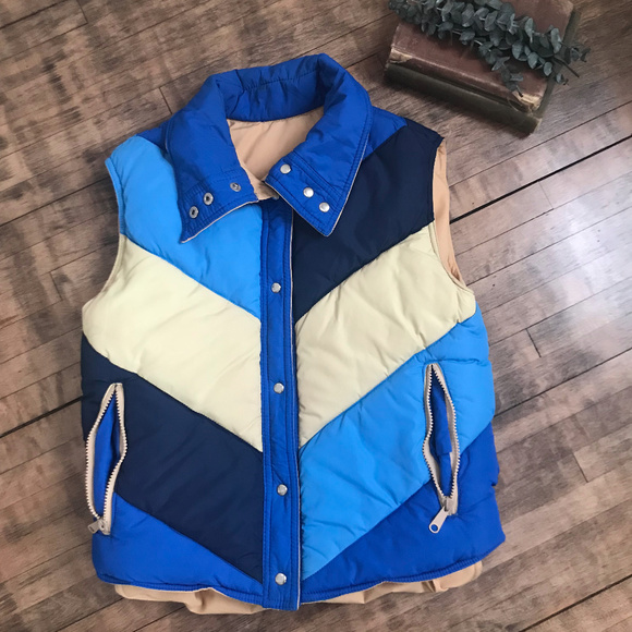Vintage Men S White Stag Foxfire Puffer Vest Size Xl Chevron Blue