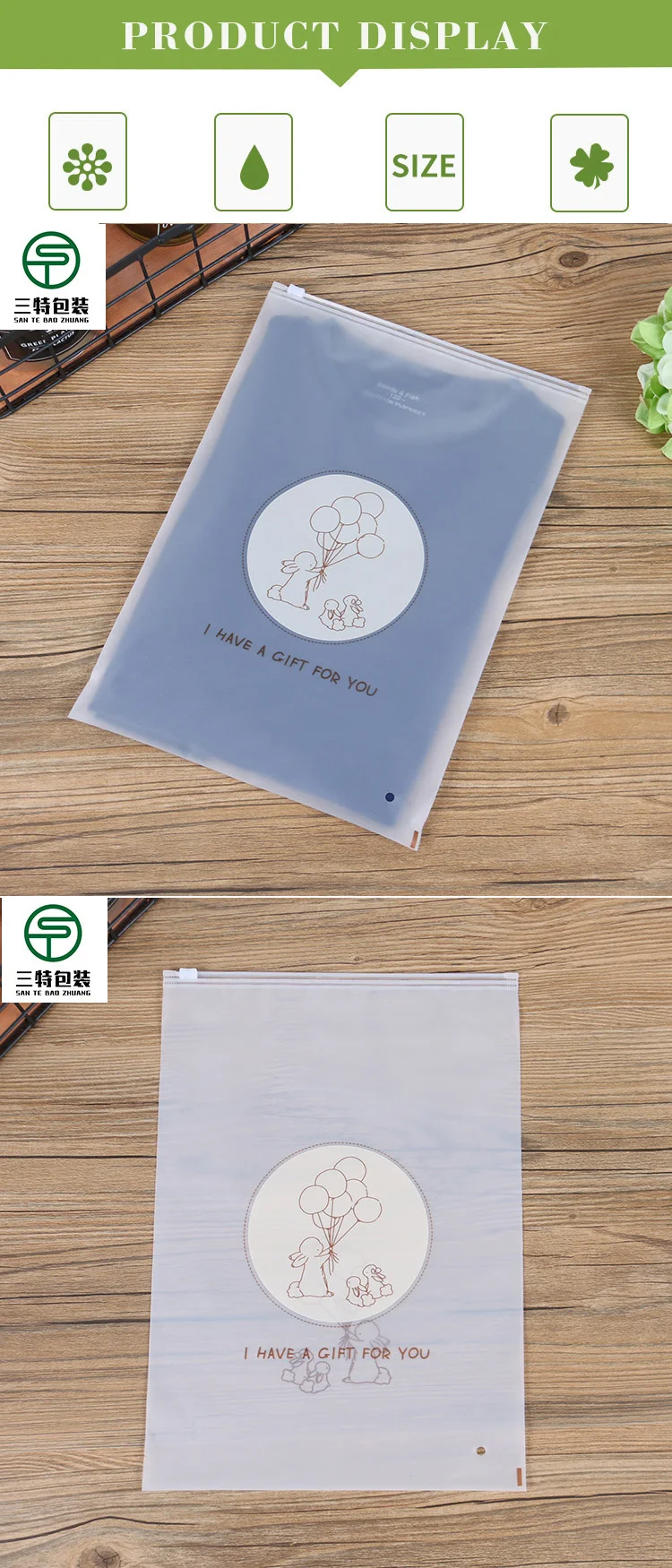 Frosted Zipper Clothing Plastic Packaging Bags Ziplock Bag For